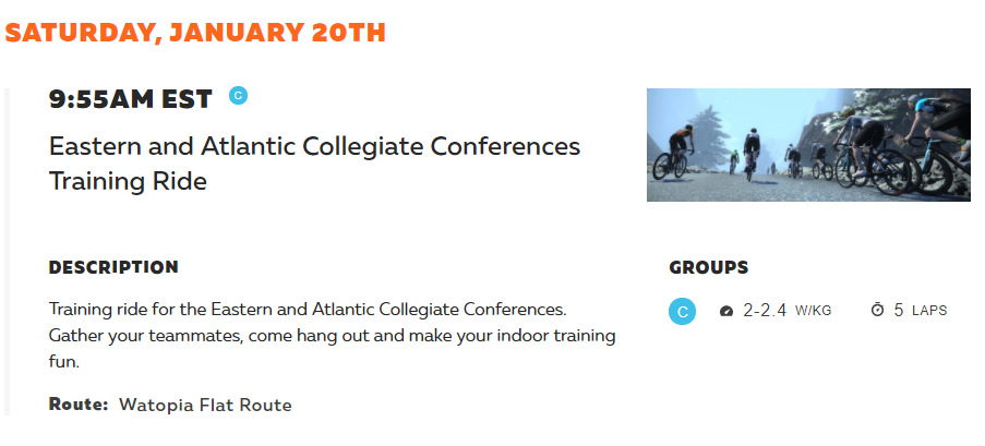 Sat Jan 20th - ECCC Zwift ride at 9:55am